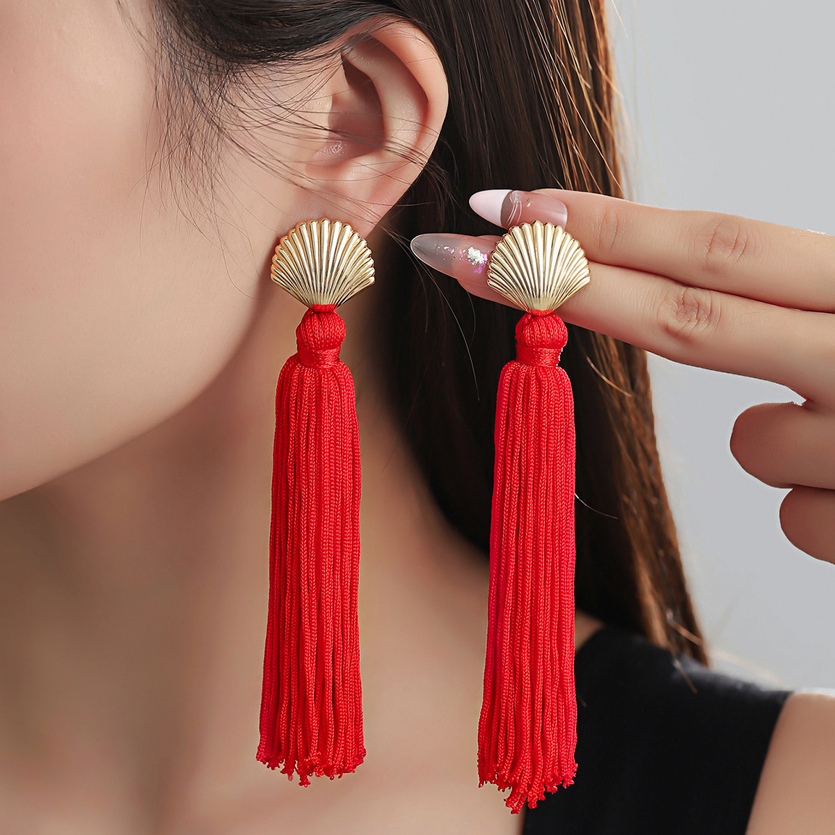 2025年新作 中国風 レッド ロング エレガント タッセル イヤリング ボヘミアン 高級感 イヤリング ピアス レディース ファッション