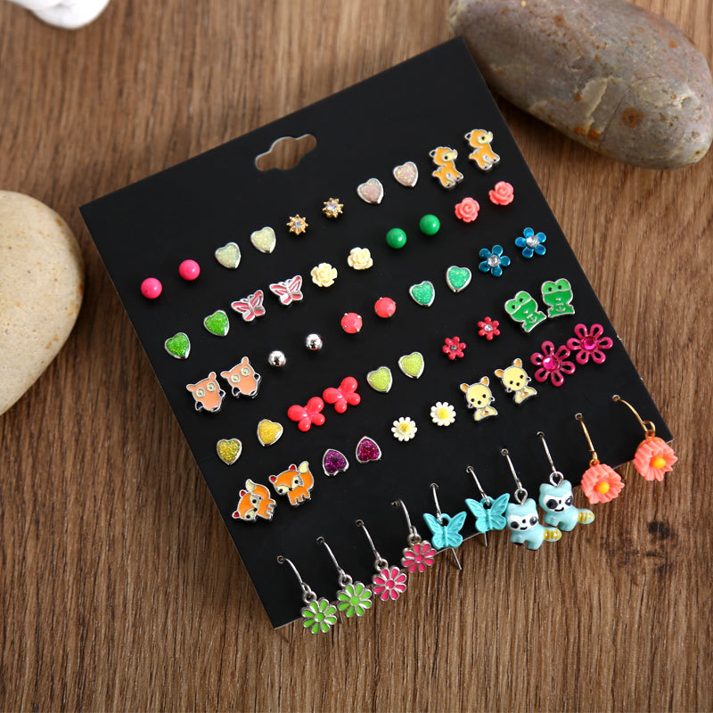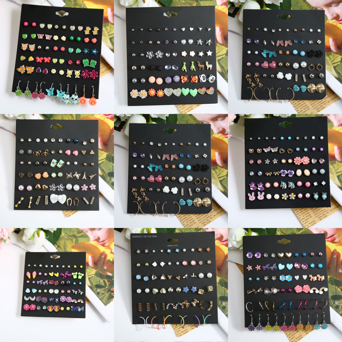 国境を越えた売れ筋合金イヤリング卸売さまざまなイヤリングセット女性用 30 ペア/セット韓国語版漫画女性イヤリング組み合わせ