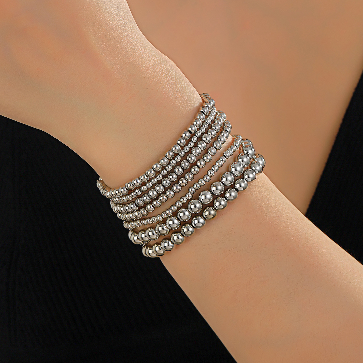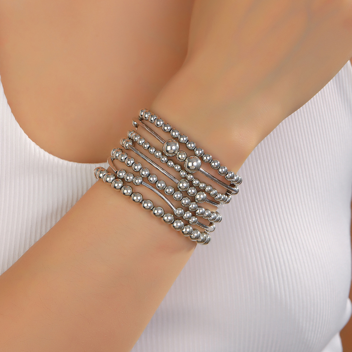 ヨーロッパとアメリカのファッション合金金属不規則なブレスレットセット甘くてクールなビーズラウンドビーズチェーンスタッキングブレスレット女性用