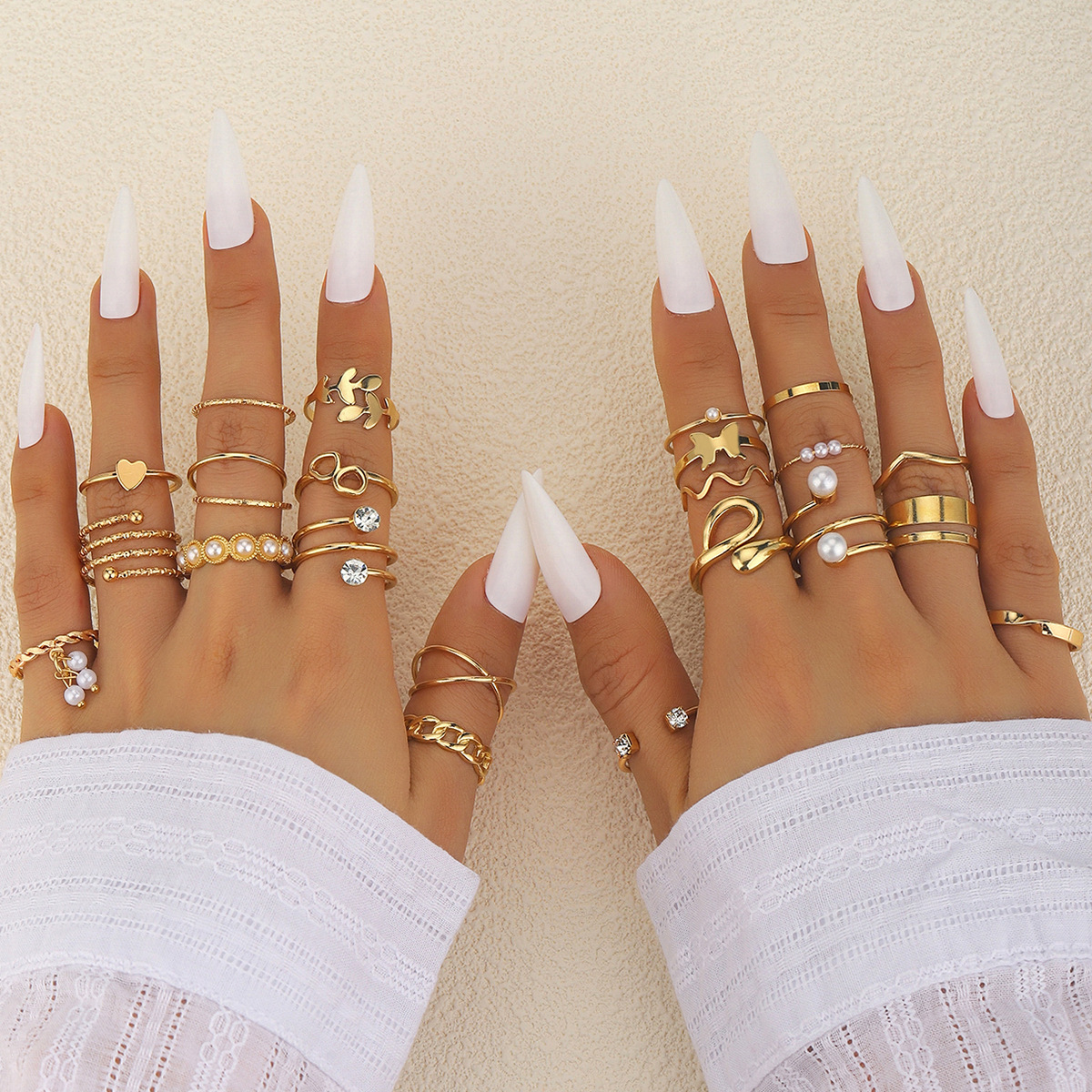 ヨーロッパとアメリカのクロスボーダーレトロ幾何学合金リングセットオープンジョイントリングインコールドスタイルビーチテールリング