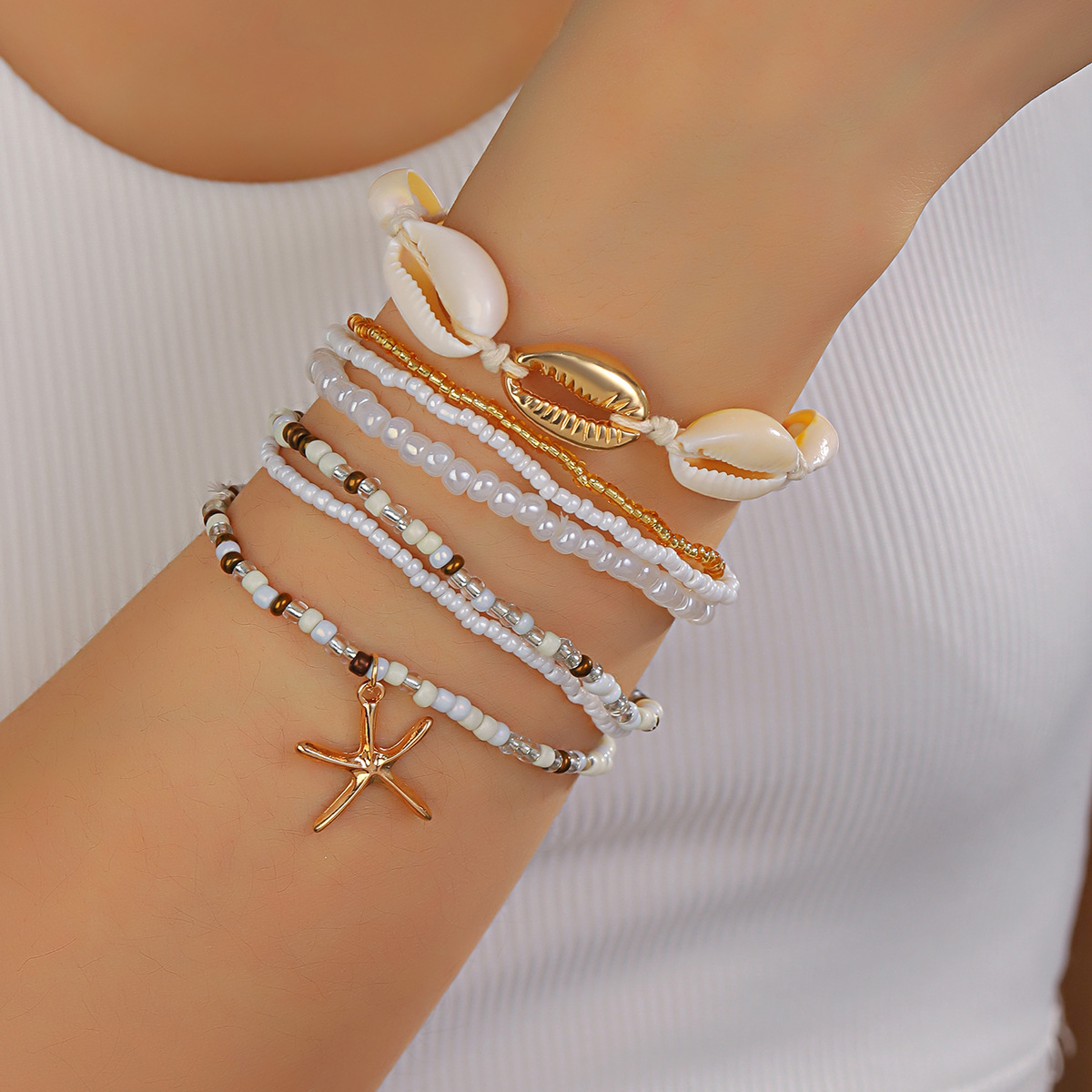 ヨーロッパとアメリカのクロスボーダーボヘミアンスタイル外国貿易ヒトデ編みブレスレットサマービーチシェルライスビーズブレスレット7点セット