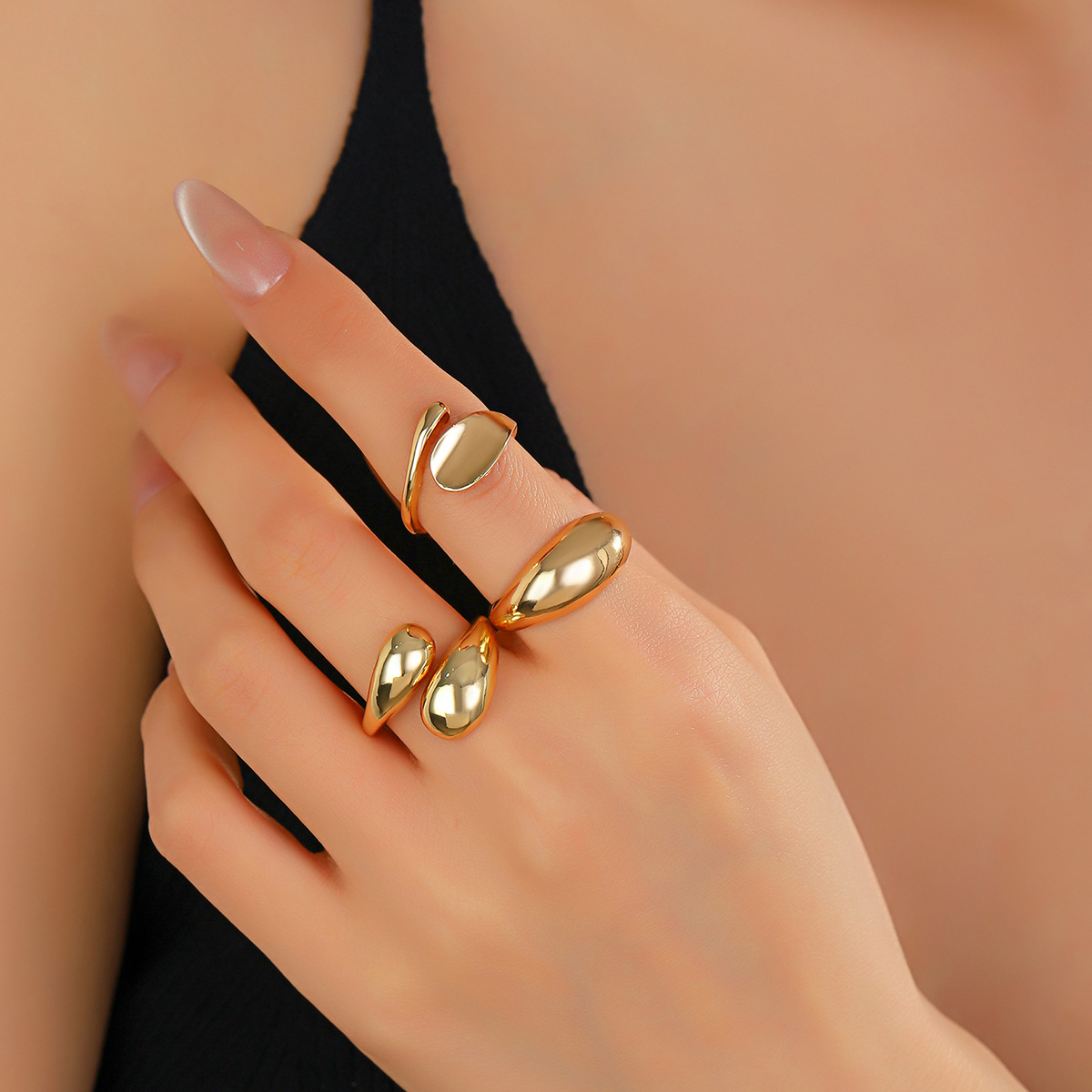 ヒップホップスタイルの液体デザインニッチウォータードロップリング合金リングユニセックス非退色パーソナライズジュエリーヨーロッパとアメリカ