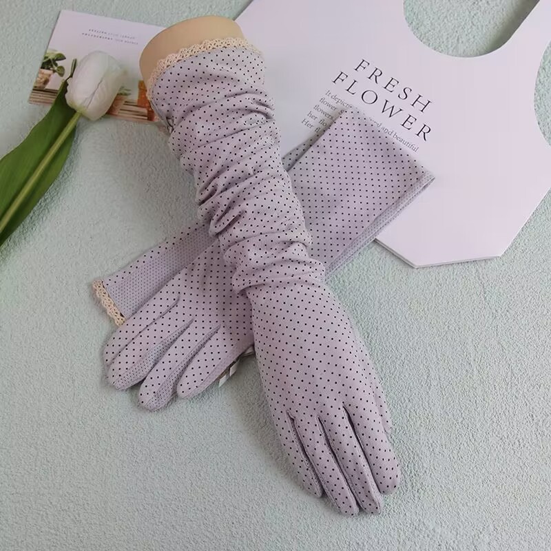 クロスボーダーの新型純綿延長日焼け止め滑り止め手袋女性車の蝶結びのポイントレースの長いタイプの日焼け止め手袋