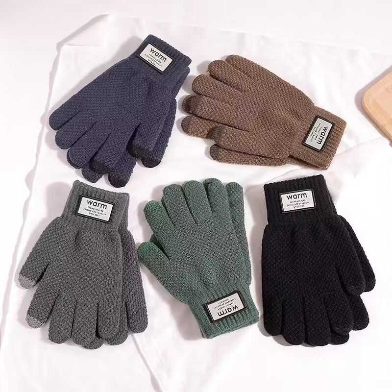 越境冬男性手袋秋冬ニット厚いベルベットタッチスクリーン乗用防寒学生保温毛糸純色