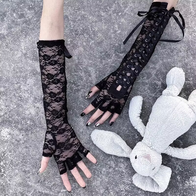 セクシーなlolitaレースのストラップの長いタイプの日本のパンクの蝶結びのcosリボンは舞踏会のクラブの手袋を装います。
