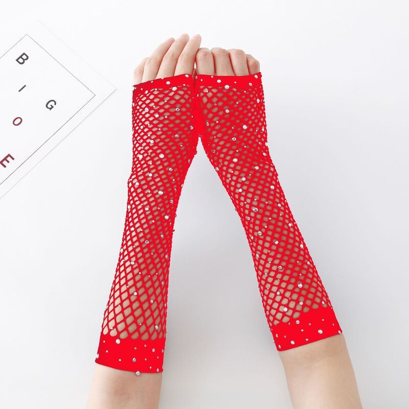 外国貿易の短いタイプのホットドリルの漁網の半分の指の手袋の女性の透かし彫りの指の弾力性の網の目のフラッシュドリルの欧米の祝日の手袋