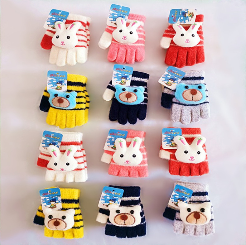 子供のニットの手袋の男女の子供の秋冬の新型の半指の5本の指の保温の男女の子供のかわいい漫画の毛糸の現物