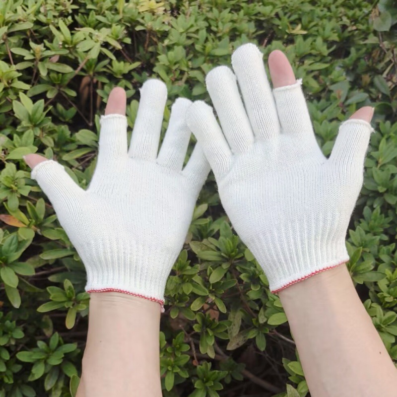 外国貿易露二本指綿糸手袋男女作業防護糸厚い耐摩耗園芸自動車工場建築