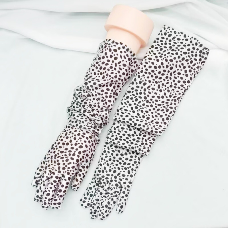 女性用クロスボーダーロング日焼け止めヒョウ柄手袋、紫外線防止アイスシルクハンドスリーブ、夏のサイクリング通気性アームガード、レトロアイススリーブ