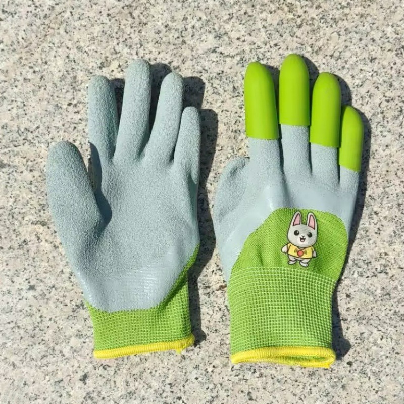 子供用四本爪海掘り保護手袋、学生キャンプ、屋外ピッキング、ガーデニング、滑り止め耐摩耗性ラテックス手袋