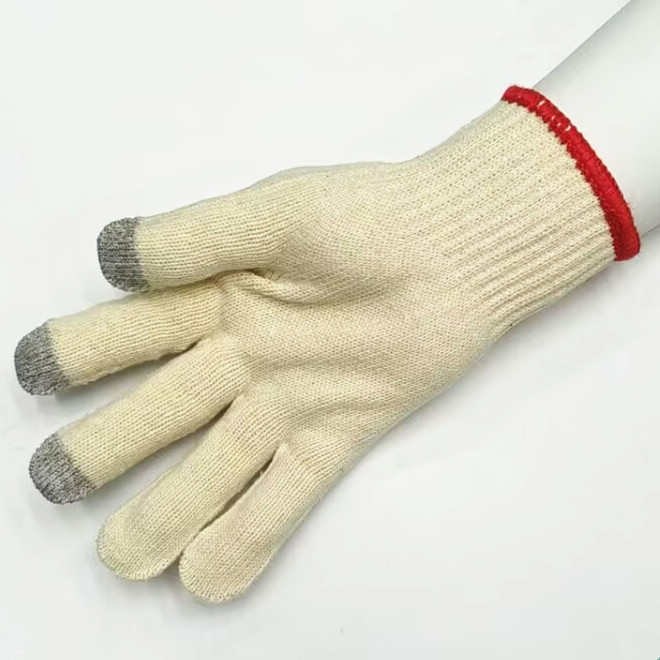 国境を越えた新型綿糸タッチパネル手袋男女労働保護労働タッチパネル防護作業白い糸手袋卸売り