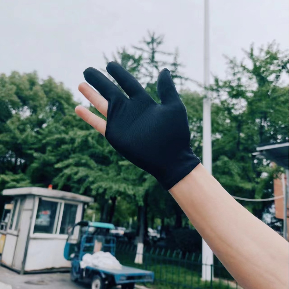 二本の指の氷糸のスパンデックスの手袋の高弾力の黒の指の手袋の男女の薄いタイプの夏の日焼け止めのネイルアートはお茶を採取して運転します。