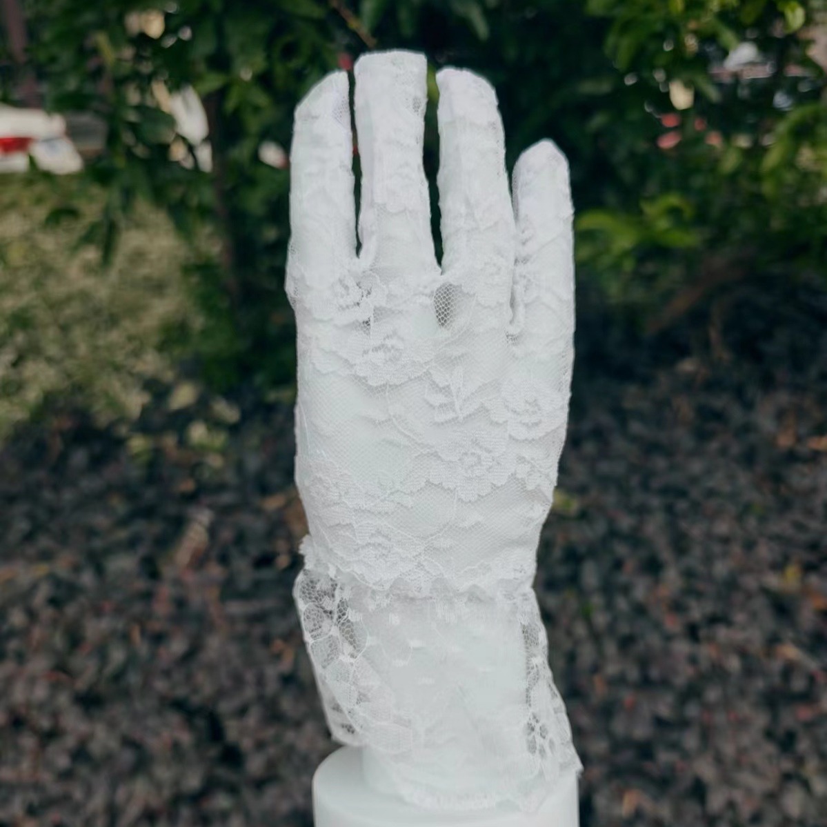 夏の日焼け止めの短いレースの手袋レースの花嫁のマナーの薄いタイプの透かし彫りの車は女性の結婚式の手袋に乗ります。