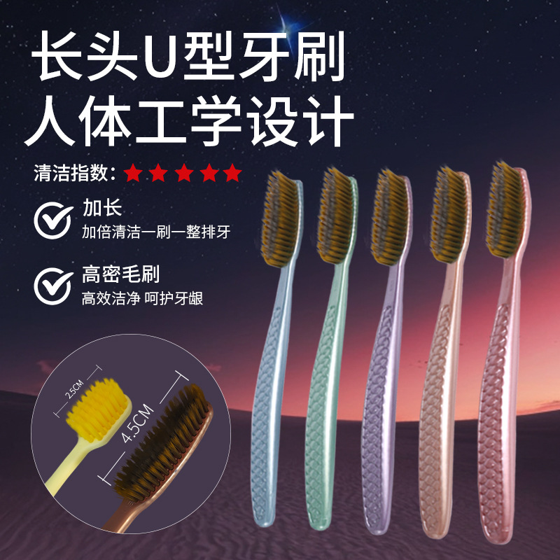 バナナ歯ブラシ、柔らかい毛の高級歯ブラシ、家庭用の柔らかい毛と硬い毛の旅行用歯間ブラシ、U字型ロングヘッド歯ブラシ、1個から