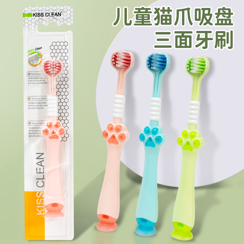 子供用三面猫爪歯ブラシ 柔らかい毛 子供用 6歳から12歳まで 1個から 漫画歯ブラシ 柔らかい毛 個別包装