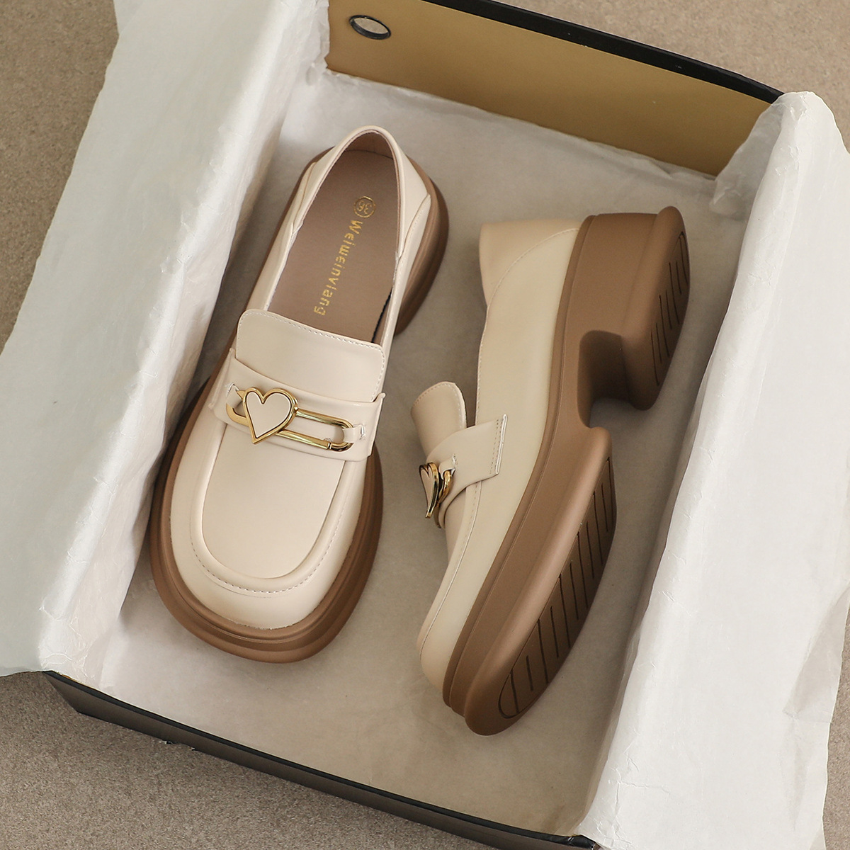 威威の女の1388-1の丸い頭の楽福の靴の女性の厚い底の英倫風の小さい革靴のひもの太さと高くなる靴