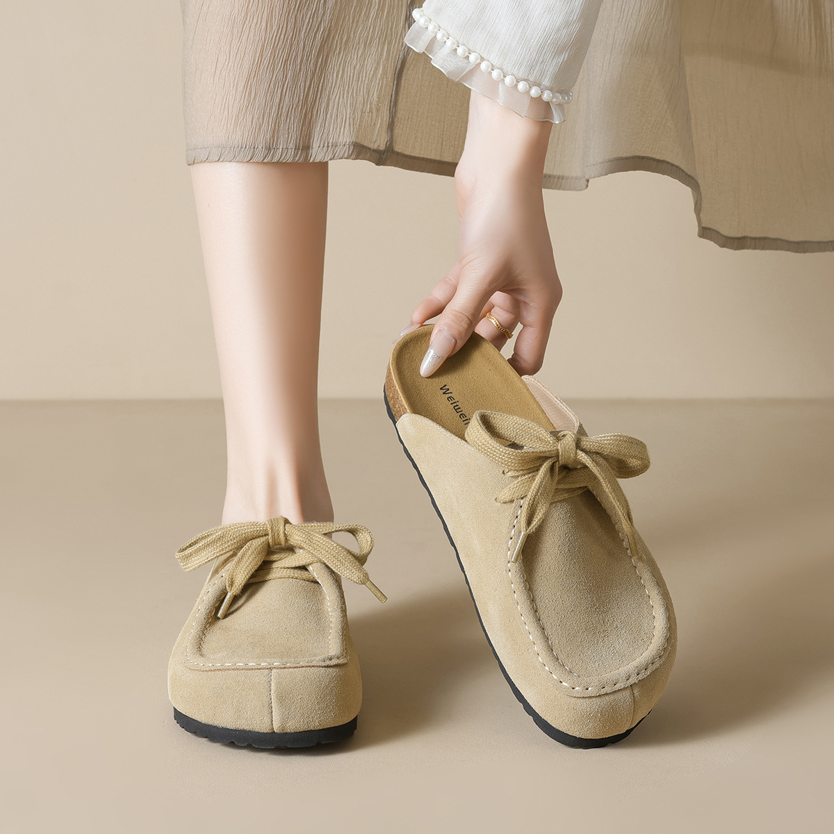 威威の女の959-32フランス式のベーケンの靴の女性の1足は2025新型の包頭の半スリッパの女性の夏の外で着ます。