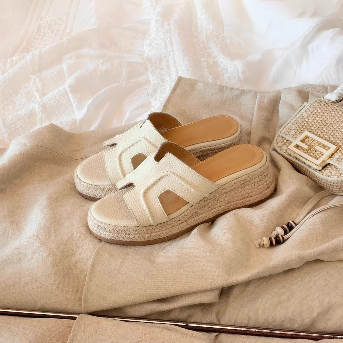 仙女風の気質を漂わせる、身長を6cmアップするスリッポンサンダル。小柄な女性にぴったりの厚底ウェッジサンダル。夏のビーチやリゾートに。