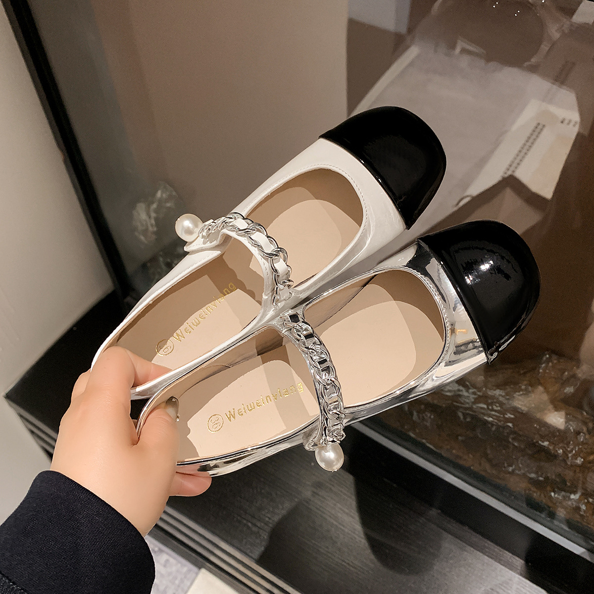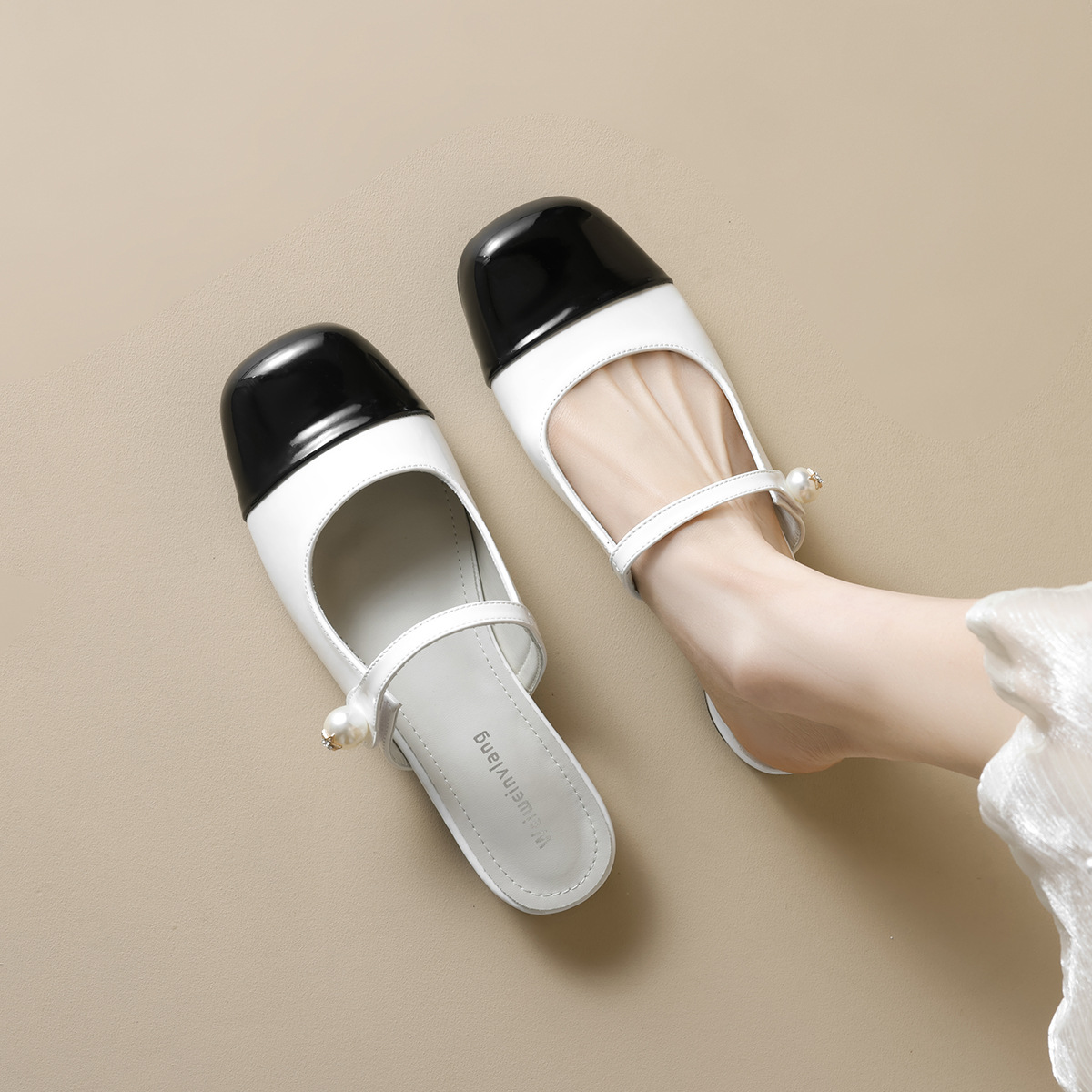 威威の女の人の128-1フランス式の丸い靴の女性の平底の1字は真珠の色を合わせます。