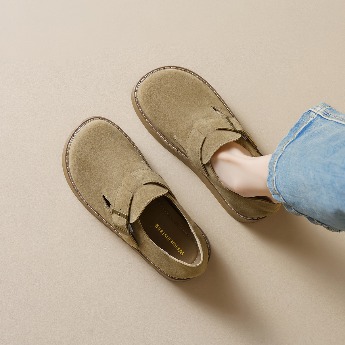 威威の女の127-7先の靴の女性の太さと2025新型の春のフランスのドリルの豆の靴の女性の柔らかい底