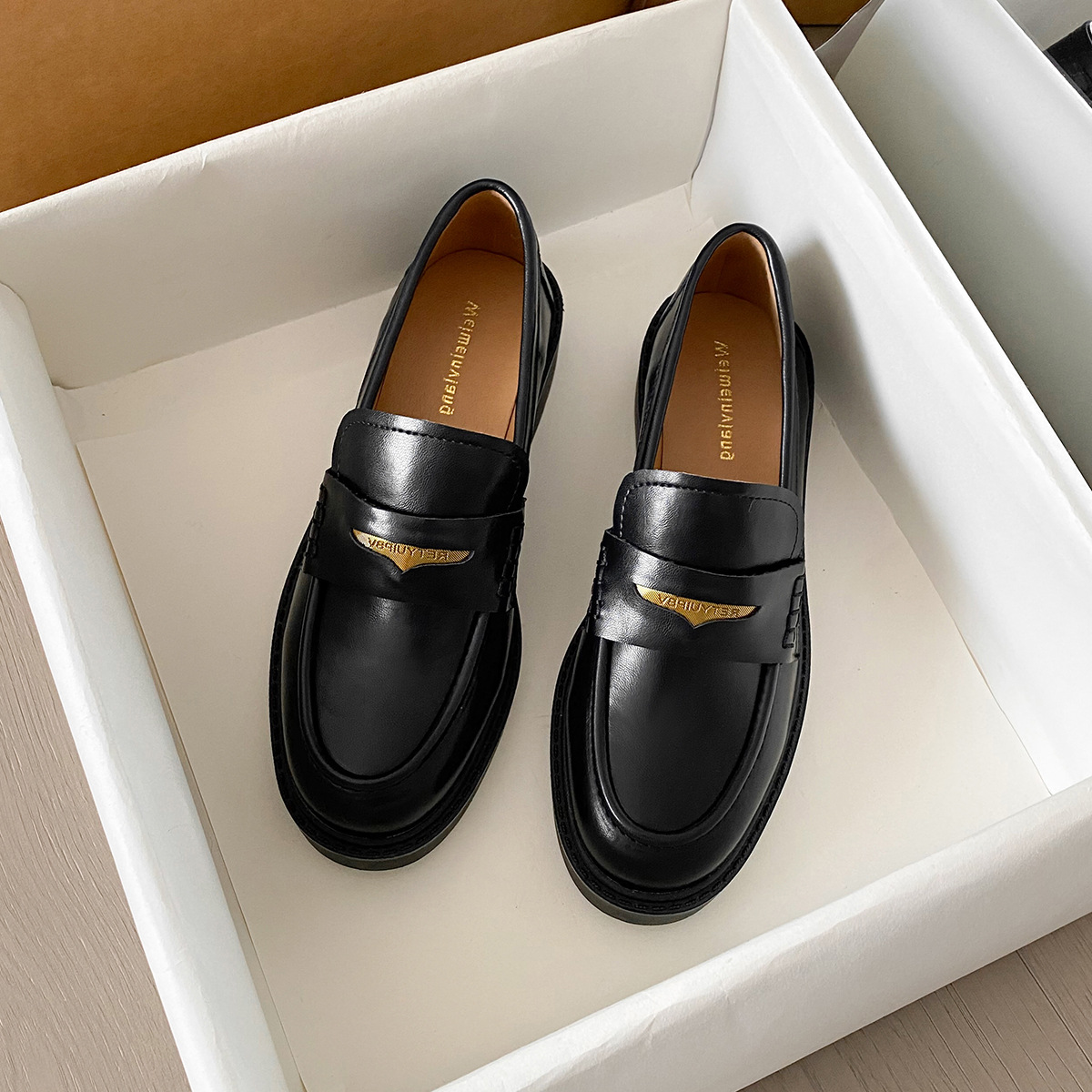 威威の女の人の1083-1黒色の小さい革靴の女性の厚い底の1足は靴の太さと復古の英倫の楽福の靴を踏んでいます。