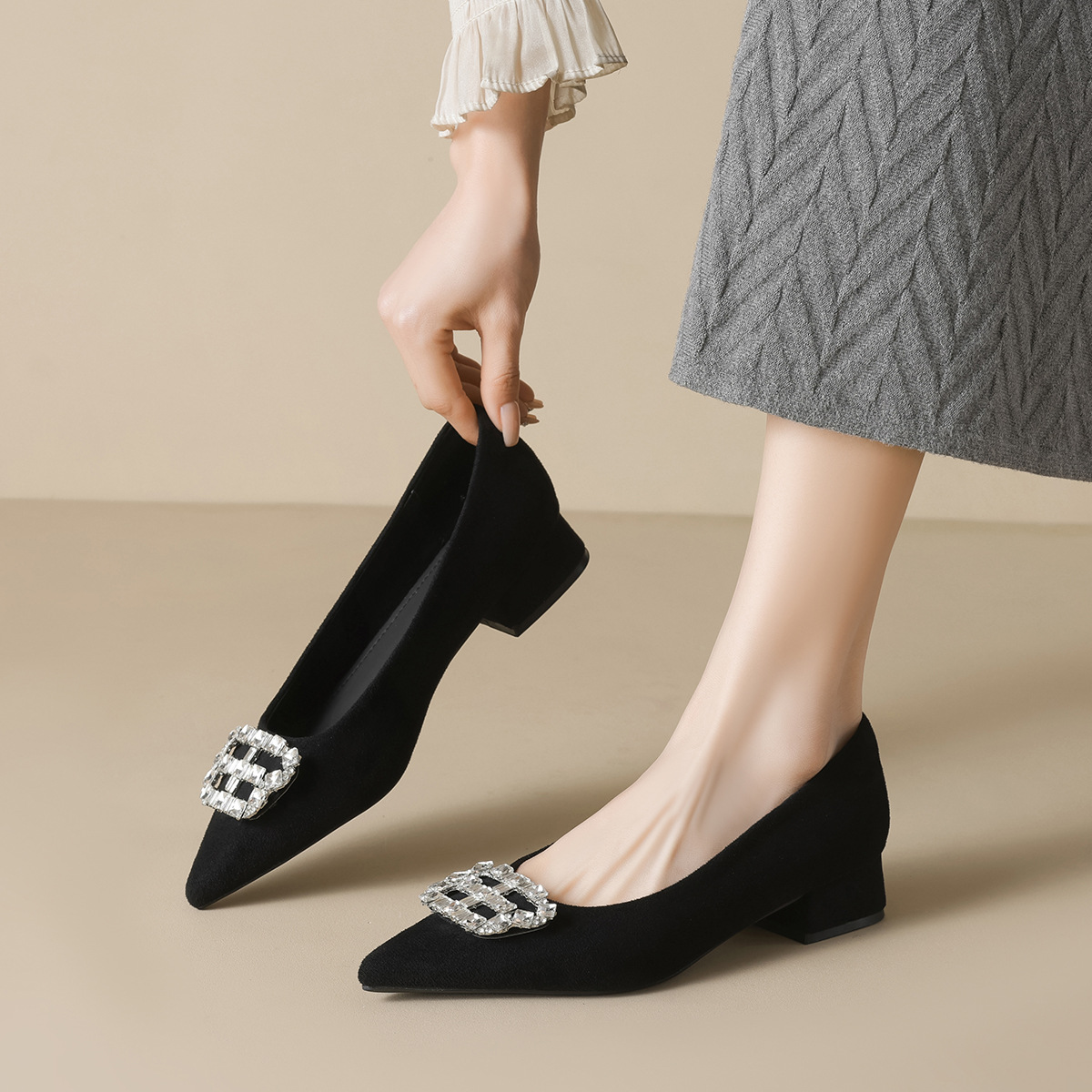 威威の女の人の5153-8先の先の靴の女性の太さと2025新型の春の気質の浅い口のドリルのハイヒール