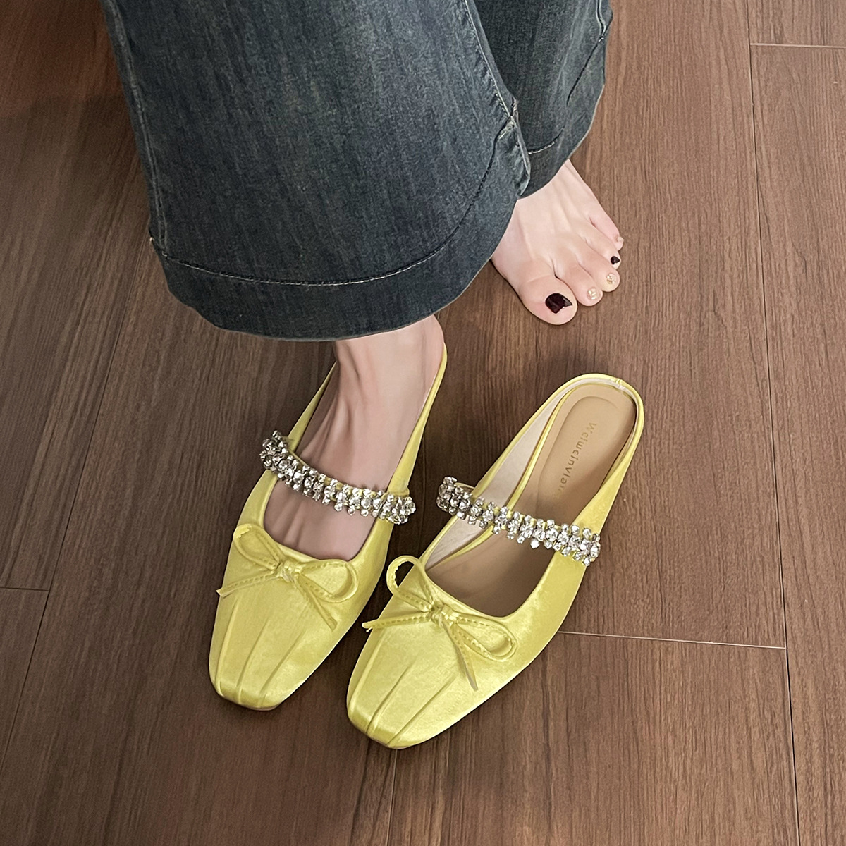 威威の女の875-1フランスの気質の包頭の後で空のサンダルの女の外は1字の先の靴の女の平底を着ます。