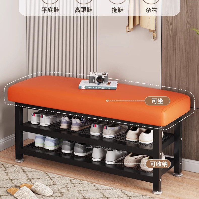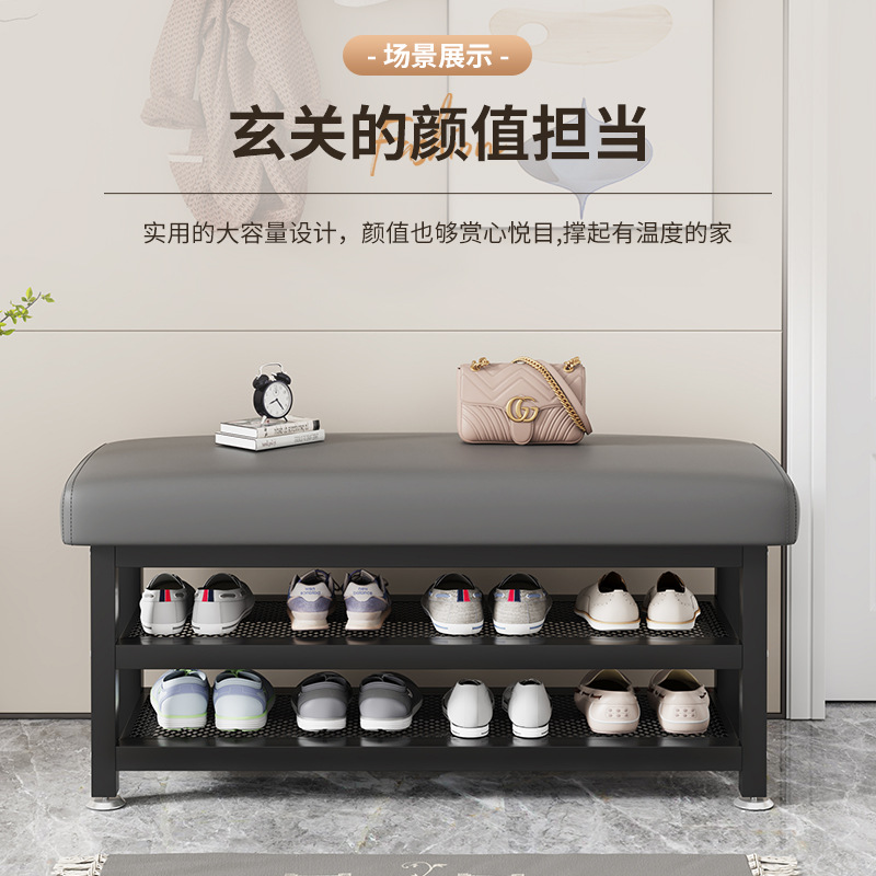 玄関家庭用靴交換腰掛け革ソフトバッグ座布団下駄箱二重収納置物長条靴棚鉄芸大腰掛け