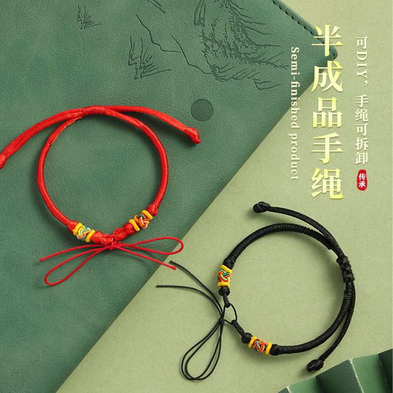 DIY ハンドロープ半完成キングコングノットレッドロープブレスレットはビーズ織りロープを着用でき、男性と女性のカップル手織りロープ