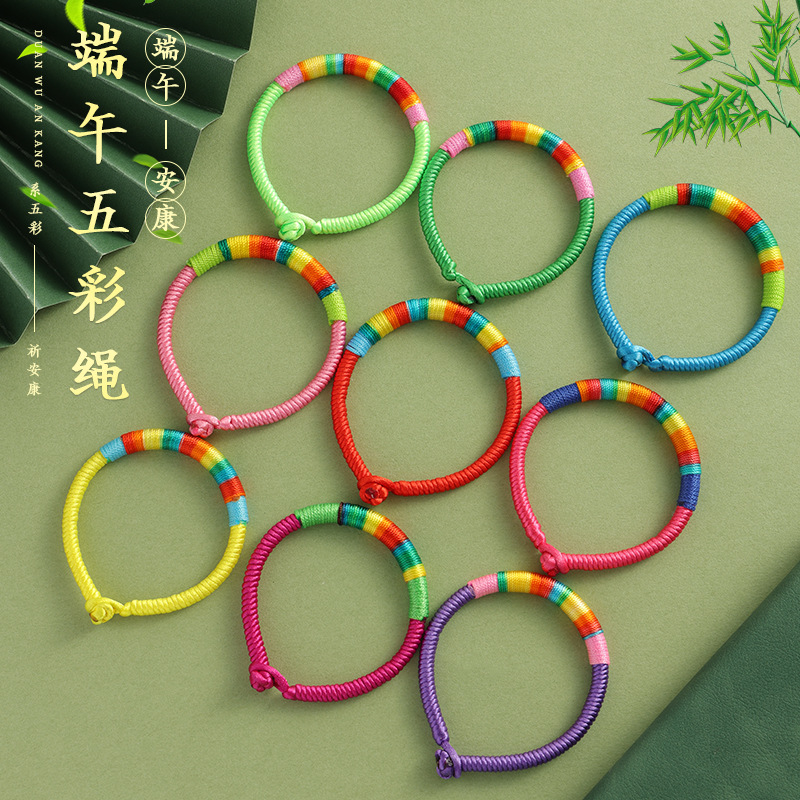 端午節カラフルなロープブレスレットシンプルなカラフルなハンドロープ露店景勝地イベント小さなギフトシングルビーズ赤いロープ卸売
