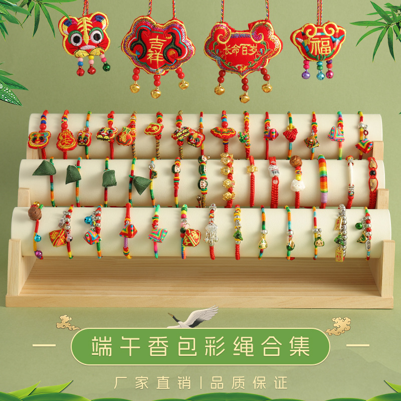 端午節子供のカラフルなロープブレスレット手織り小さな団子ブレスレットカラフルな糸虎頭香袋ブレスレット卸売