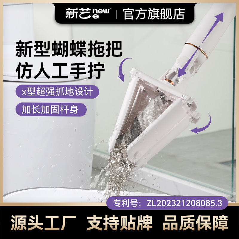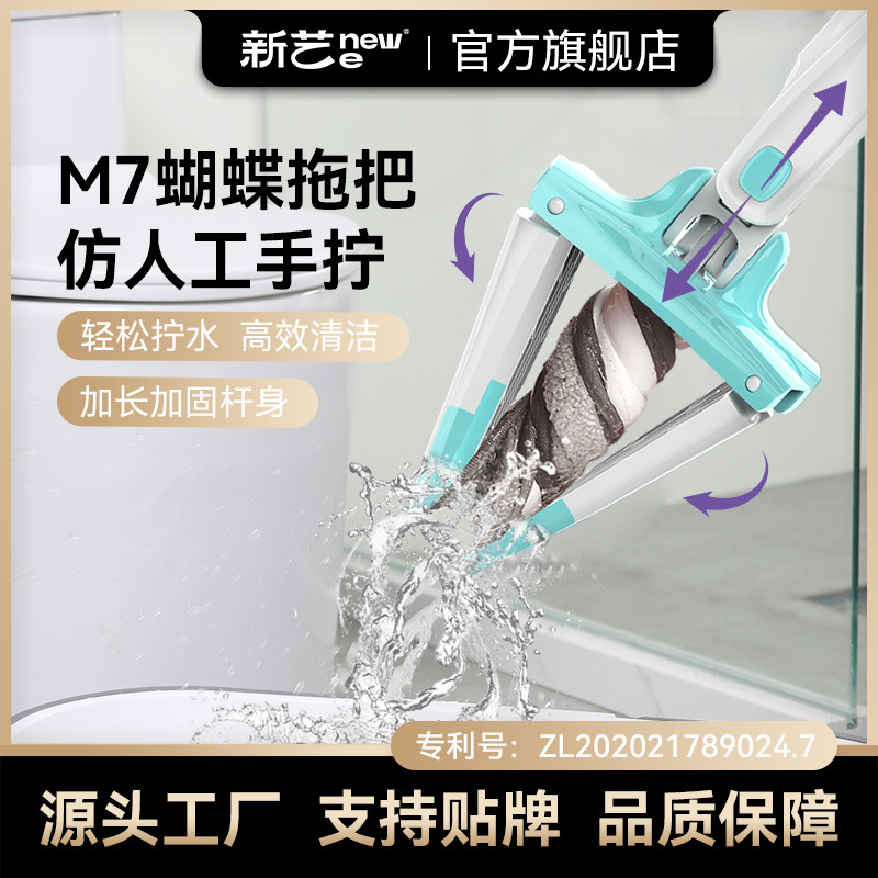 家庭用の新型蝶モップシリーズの卸売り特許は手をまねてきれいな乾湿両用回転平板モップをねじる