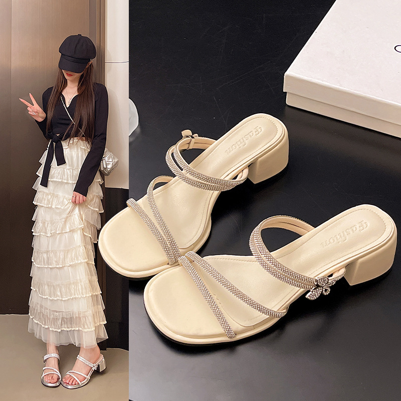 ラインストーンバタフライツーウェアサンダル女性のアウターウェア 2025 夏の新しいフェアリースタイルオープントゥサンダルスカートとハイヒール