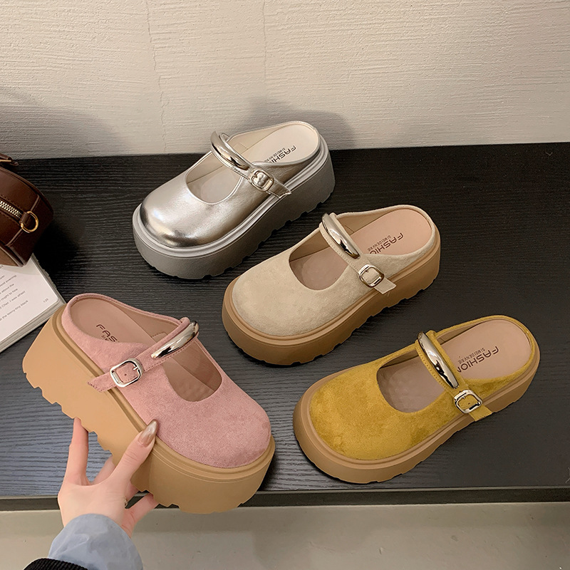 女性が外で履く包頭スリッパ 2025 春の新作レトロ人気ファッション小柄な人向け厚底ビルケンシュトックハーフスリッパ