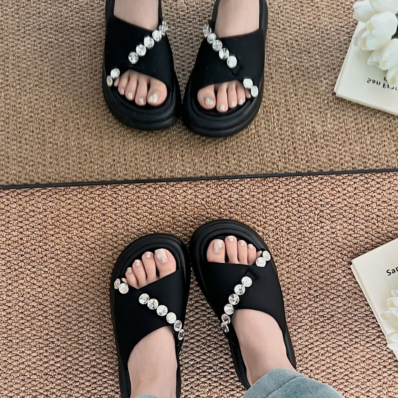 ヨーロッパステーション小柄スリッパ女性の夏アウター 2025 新しいプラットフォーム厚底サンダルワンラインサンダル