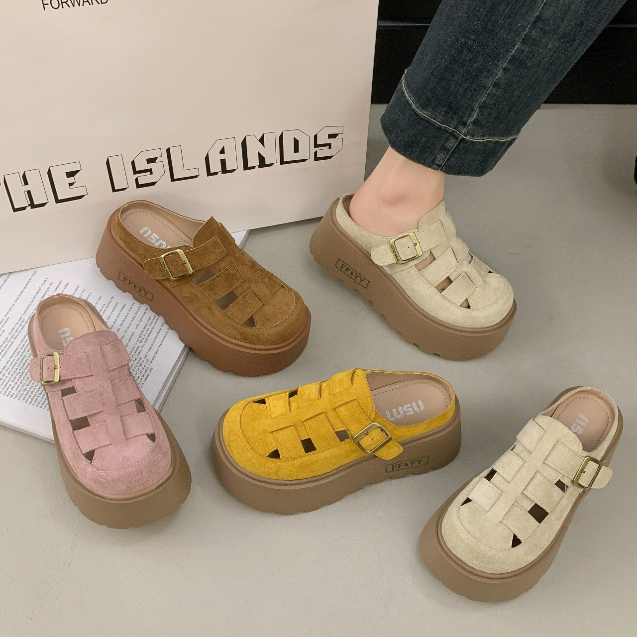 レトロ包頭下駄中空婦人靴 2025 新しい夏小厚底高品質ビルケンシュトックスリッパ