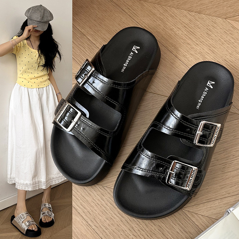2025 超人気の厚底スリッパ、女性が夏に履くためのファッショナブルで多用途なカジュアルな女性用スーパーソフトサンダル