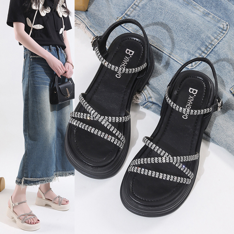 女性靴2025夏の新型ドリルケーキのハイヒールの外に厚い底のアンドロメダ風の夏にスカートを合わせてサンダルを着る