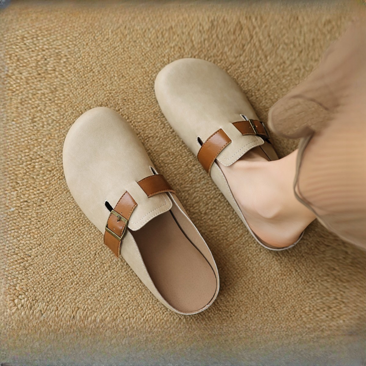 フランス式ベーケン靴女2025新型博ケン包頭半スリッパ一足漕ぎ怠け者靴栗色ベージュ超繊維