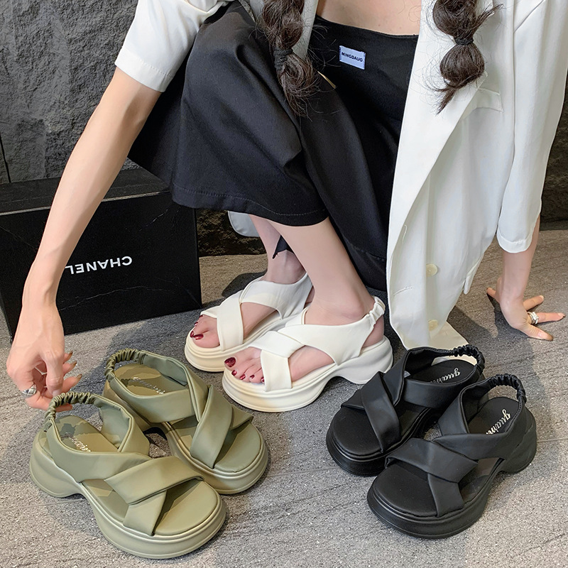 2025夏の新型小柄なビーチシューズ高級感のあるフランス式のスカートとローマの靴のビスケットの厚い底のサンダルの女性