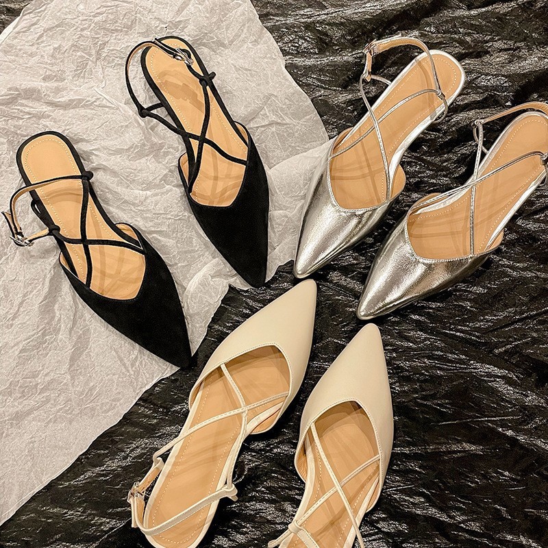 優しいアンドロメダ坂とシングル靴2025新型フランス気質優雅な皮面の先が浅い後、空の通勤サンダル