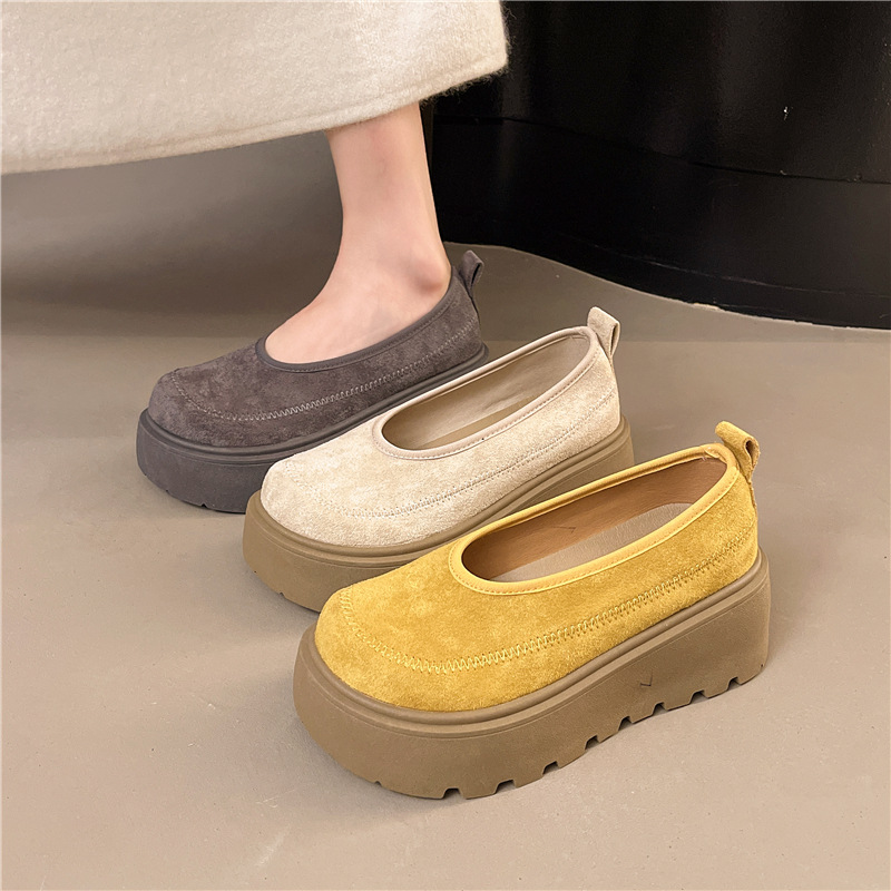 2025新型のレトロな反毛皮の厚い底のビスケットの靴の女性の子供の頭の1足の靴の組み合わせの超軽いカジュアルシューズ