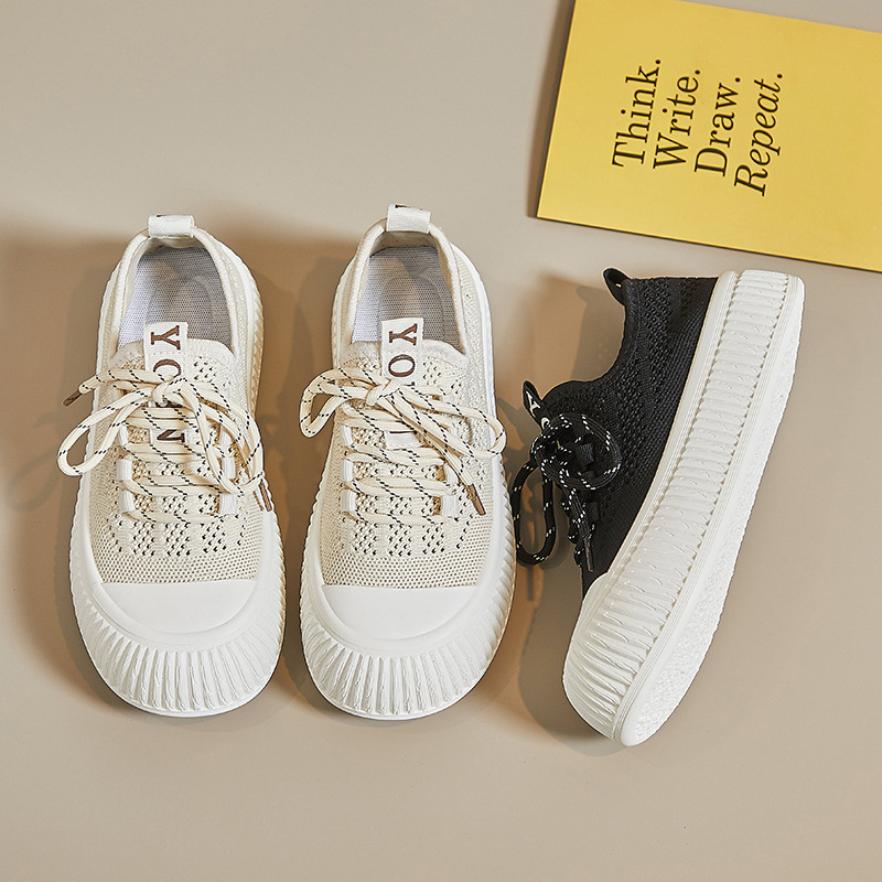 夏の通気性キャンバス靴女性2025新型飛織網面白靴厚い底透かし彫り板靴運動カジュアル靴