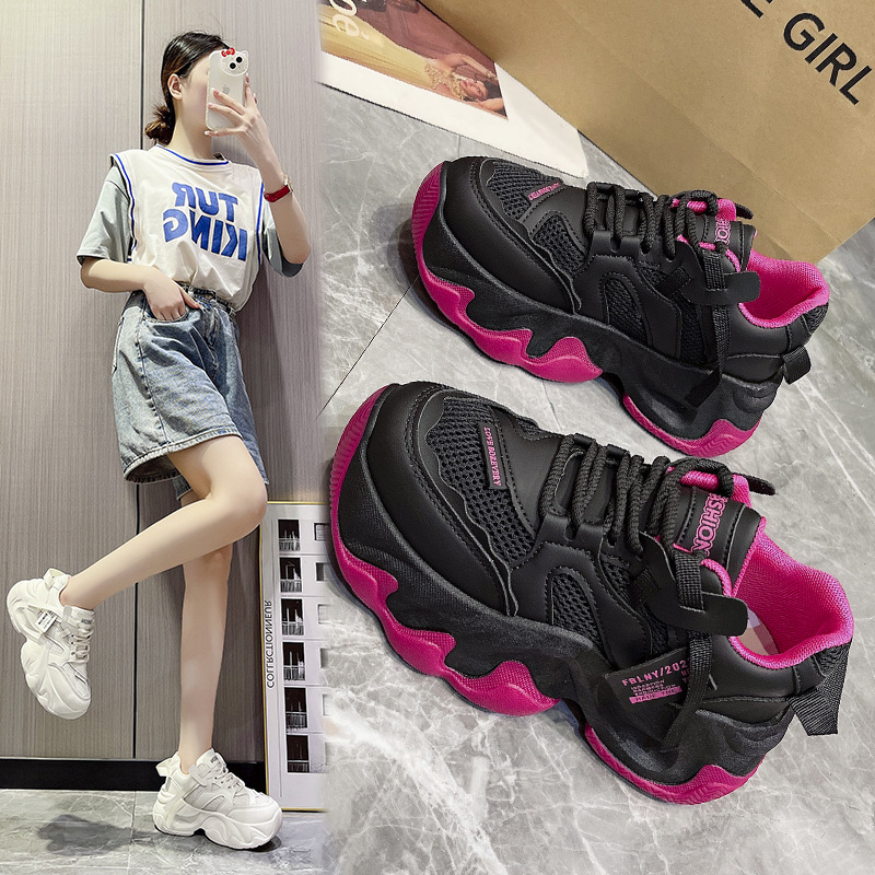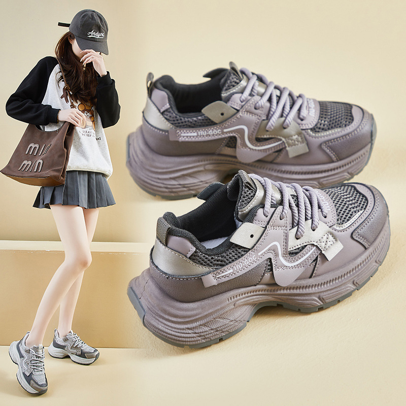 2025通気性のココナッツの靴ネットの靴のファッションの女性の靴の屋外の靴の厚い底のネットの顔のカップルの男女の運動靴のお父さんの靴