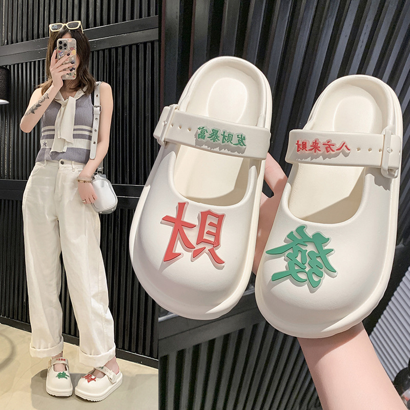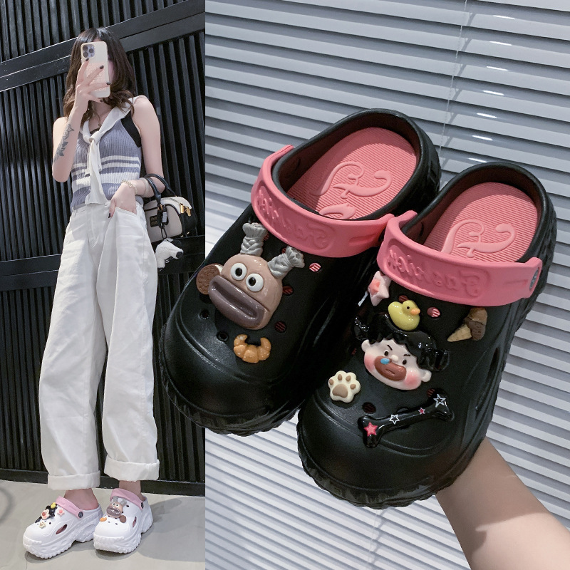 厚い底の穴の靴の女性の夏のファッションの外は2025新型のアニメのかわいい厚い底の包頭の冷たいスリッパのビーチの靴を着ます。