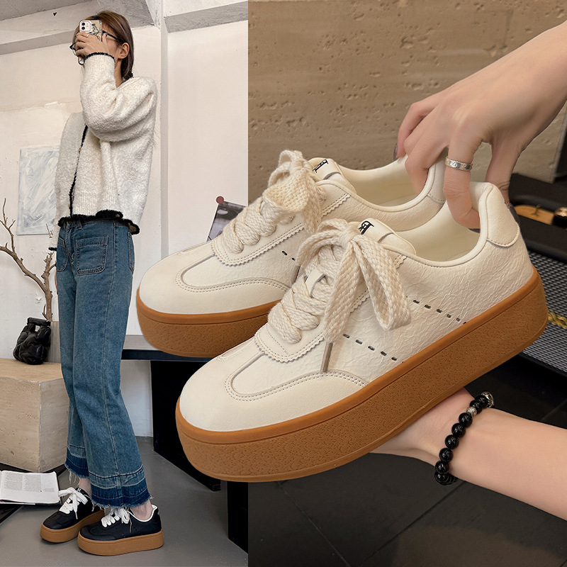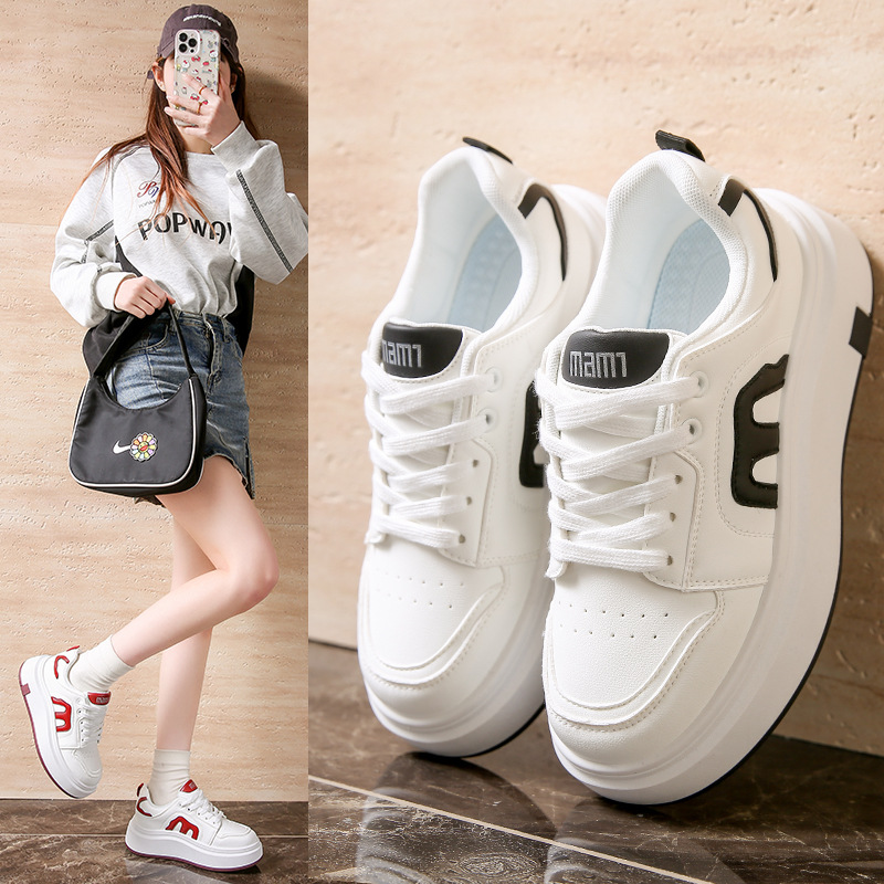今年は人気のある白靴の女性モデル2025年春の新型の厚い底が高くなりました。