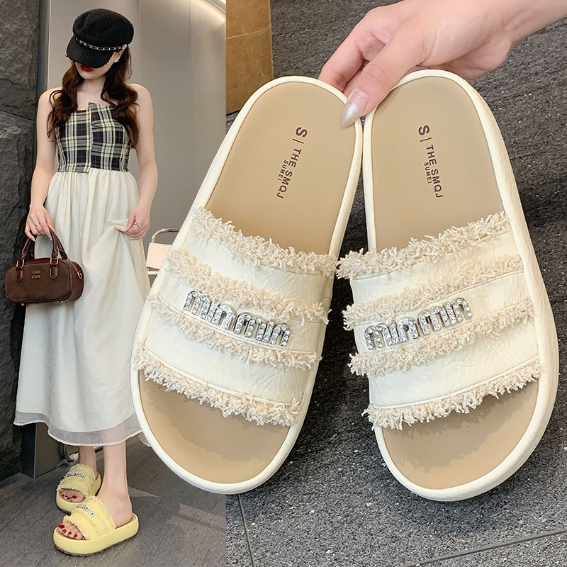 厚い底の小さい香風のスリッパの女性の夏の外は2025年の新型の超美しいファッションのドリルの松の餅の1字の砂浜を着て涼しくなります。
