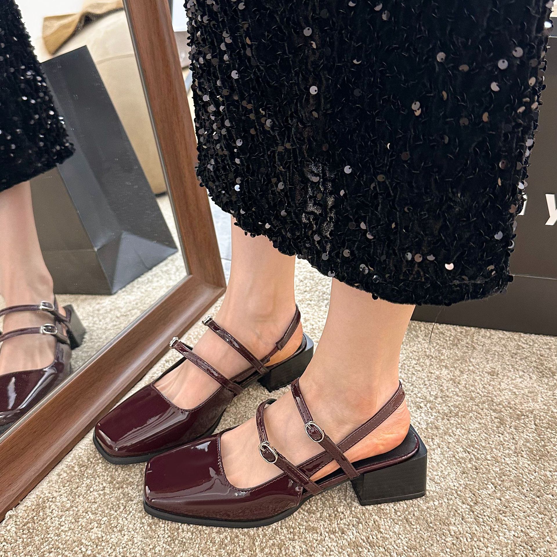 一字のスリッパ付きの女性の夏の新型のフランス風の気質の中でハイヒールの外はシンプルな四角い頭を着ています。