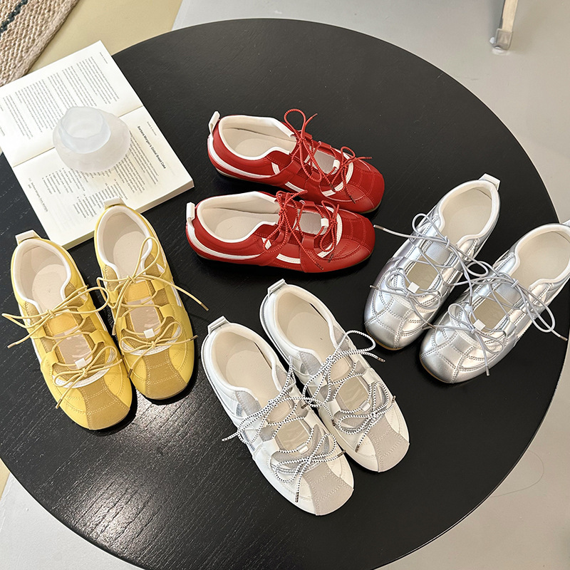 ニッチなバレエ風アガットトレーニングシューズ レディース 2025春秋新作 万能カジュアルスニーカー スポーツフラットシューズ ホワイト