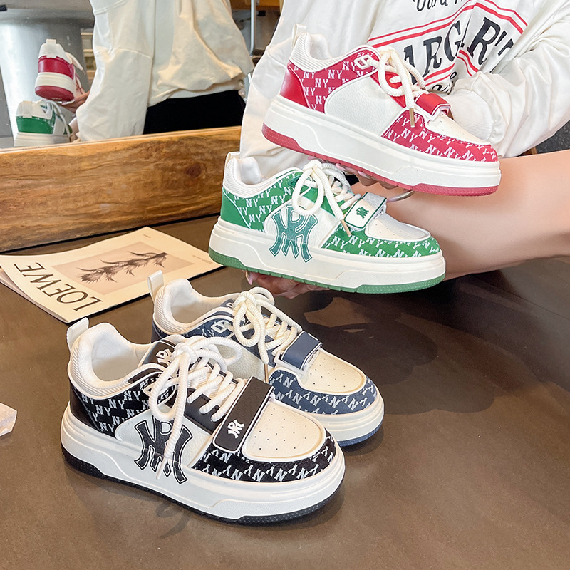 女性のための厚底道徳訓練靴 2025 秋の新ラウンドトゥ醜いカラーマッチングフォレストシューズカジュアルスポーツシューズ白い靴